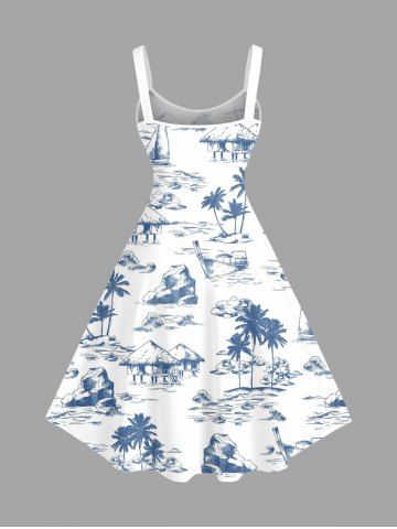Plus Size Coconut Tree Sailboat Stone Print Hawaii Tank Dress - White - M