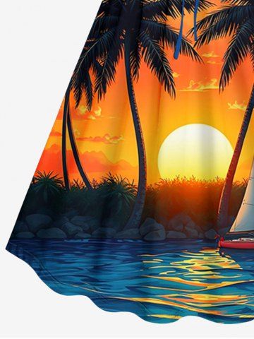 Graphic Dresses > Plus Size Coconut Tree Sailboat Sun Cloud Print Cinched Hawaii Dress
