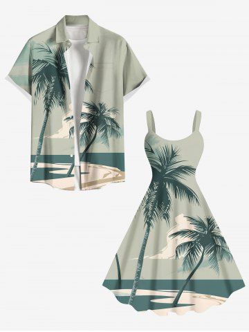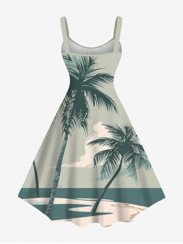 Plus Size Coconut Tree Sea Beach Cloud Print Hawaii A Line Tank Dress - Green - 2x