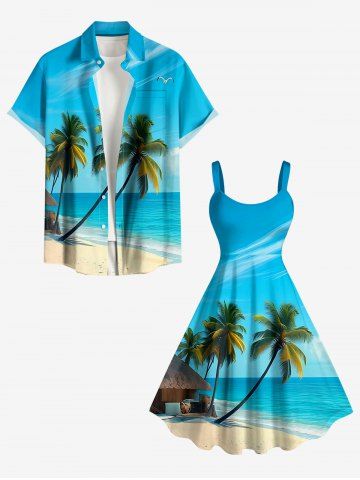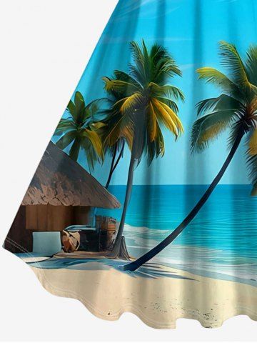 Plus Size Coconut Tree Sea Beach Print Hawaii A Line Dress - Sky Blue - 5x