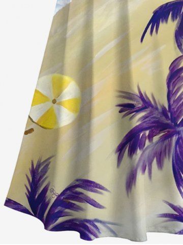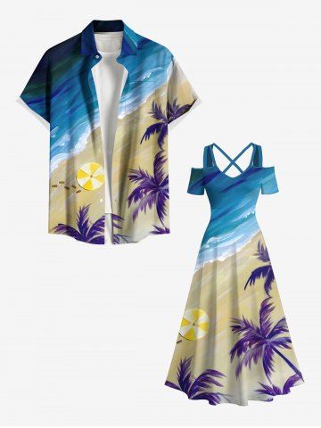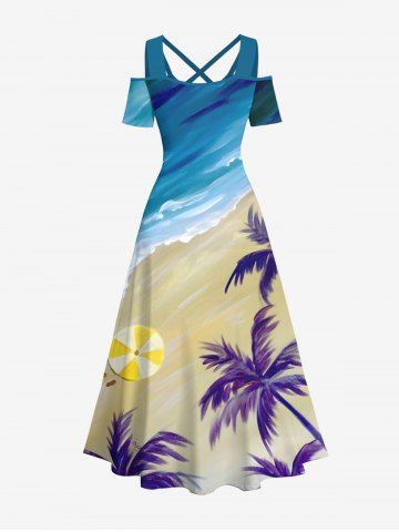 Graphic Dresses > Plus Size Coconut Tree Sea Beach Print Hawaii Cold Shoulder Crisscross A Line Maxi Dress