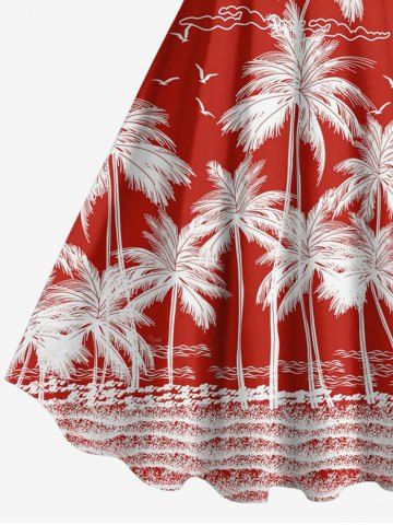 Plus Size Coconut Tree Sea Bird Print Hawaii A Line Dress - Red - Xxs
