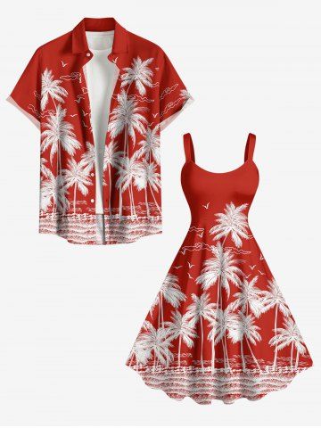 Plus Size Coconut Tree Sea Bird Print Hawaii A Line Dress - Red - Xs