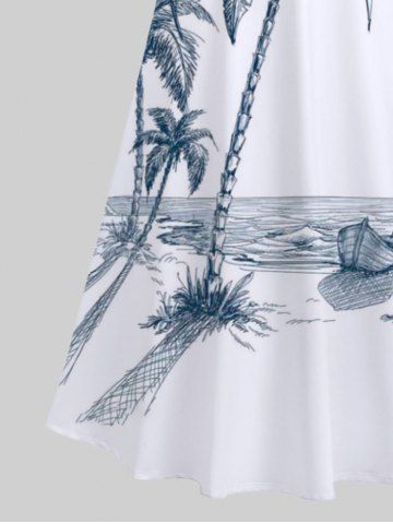 Plus Size Coconut Tree Sea Boat Bird Print Crisscross Cold Shoulder Hawaii Midi Dress - White - 2x