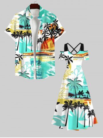 Graphic Dresses > Plus Size Coconut Tree Sea Colorblock Print Hawaii Crisscross A Line Maxi Dress