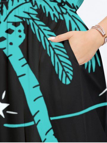 Plus Size Coconut Tree Sea Colorblock Star Print Hawaii Split Pocket A Line Midi Dress - Green - 6x