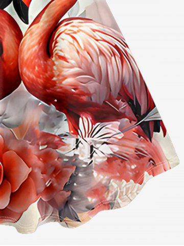 Plus Size Coconut Tree Sea Flower Flamingo Print Hawaii A Line Dress - Red - S