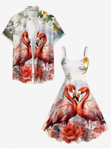 Graphic Dresses > Plus Size Coconut Tree Sea Flower Flamingo Print Hawaii A Line Dress