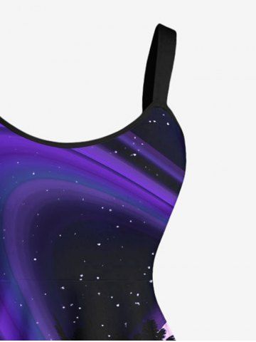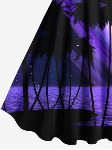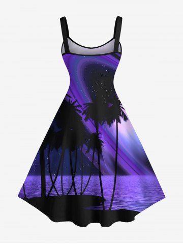 Plus Size Coconut Tree Sea Galaxy Print Hawaii A Line Tank Dress - Purple - S