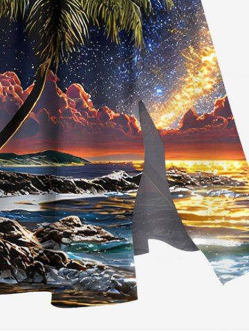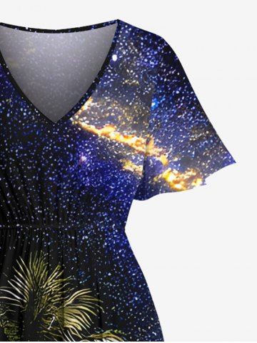 Plus Size Coconut Tree Sea Glitter Galaxy Print Hawaii Split Pocket A Line Midi Dress - Black - 6x