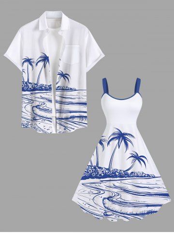 Plus Size Coconut Tree Sea Hand-painted Print Hawaii A Line Tank Dress - White - 6x