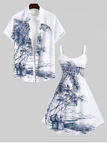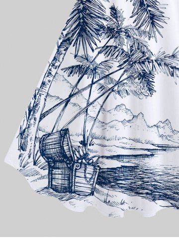 Plus Size Coconut Tree Sea Mountain Box Print Hawaii Tank Dress - White - 6x