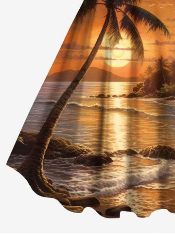 Plus Size Coconut Tree Sea Ombre Dusk Print Hawaii A Line Dress - Brown - 4x