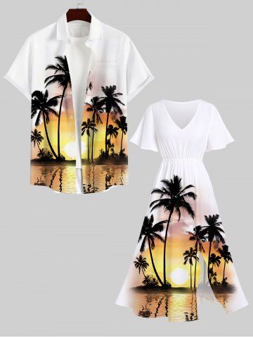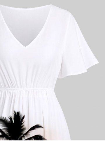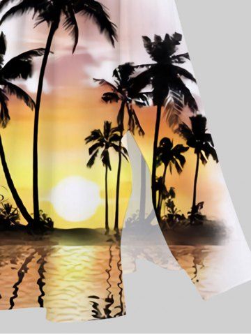 Plus Size Coconut Tree Sea Ombre Dusk Print Hawaii Split Pocket A Line Midi Dress - Multi-a - M