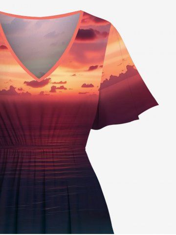 Plus Size Coconut Tree Sea Ombre Dusk Print Hawaii Split Pocket A Line Midi Dress - Multi-a - S
