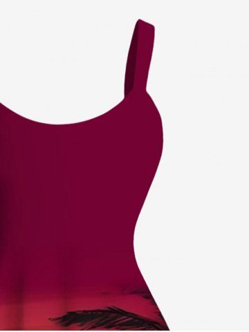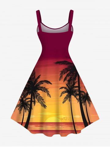 Plus Size Coconut Tree Sea Ombre Dusk Sunset Print Hawaii A Line Tank Dress - Orange - 5x