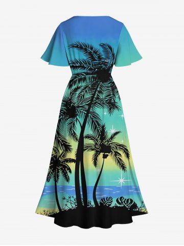 Graphic Dresses > Plus Size CoconuT Tree Sea Ombre Sky Print Split Hawaii Midi Dress