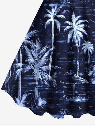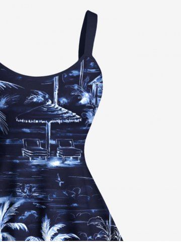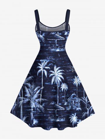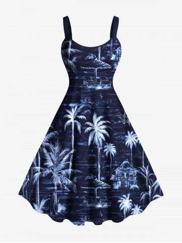 Plus Size Coconut Tree Sea Print Hawaii A Line Tank Dress - Blue - 2x