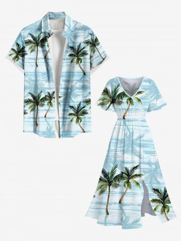 s*****w4Coconut Tree Sea Print Plus Size Matching Hawaii Beach Outfit For CouplesColor: LIGHT BLUEIt took a couple of weeks to get the dress. I ordered a XXL based on measurements, but it was way too big. The material doesn't feel very cool, but I like the print. I will be exchanging for a smaller size.