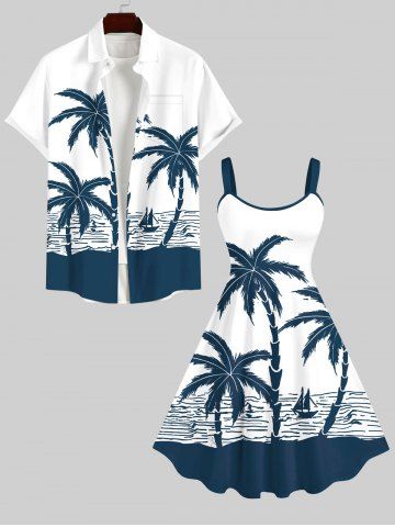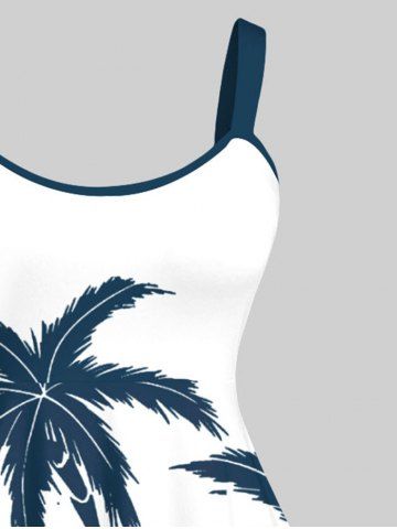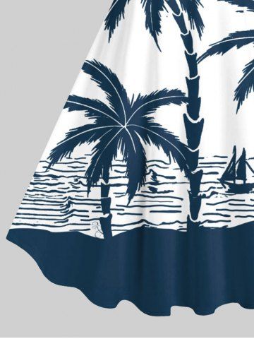 Plus Size Coconut Tree Sea Sailboat Colorblock Print Hawaii Tank Dress - White - 6x