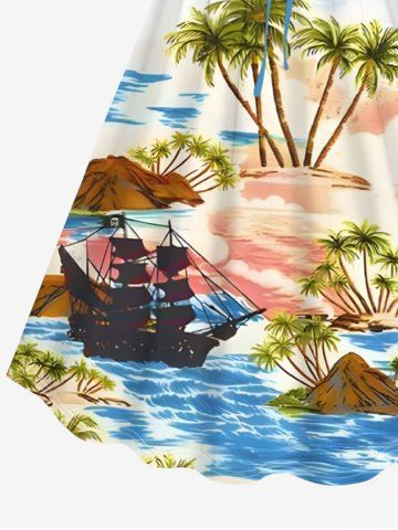 Graphic Dresses > Plus Size Coconut Tree Sea Ship Ombre Cloud Print Hawaii Cruise Cinched A Line Dress