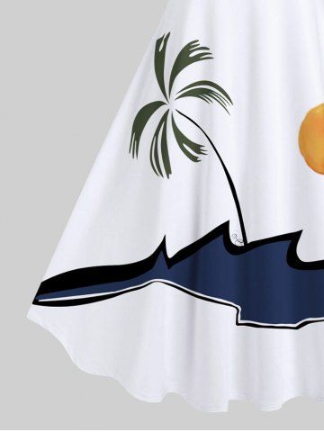 Plus Size Coconut Tree Sea Sun Colorblock Print Hawaii Tank Dress - White - 2x