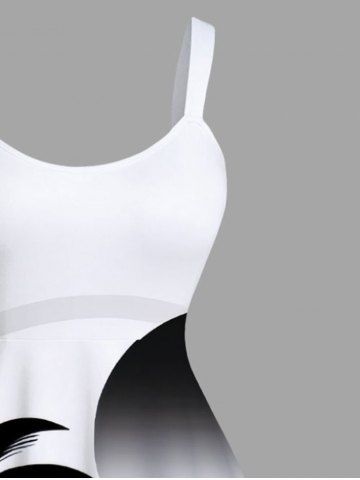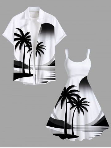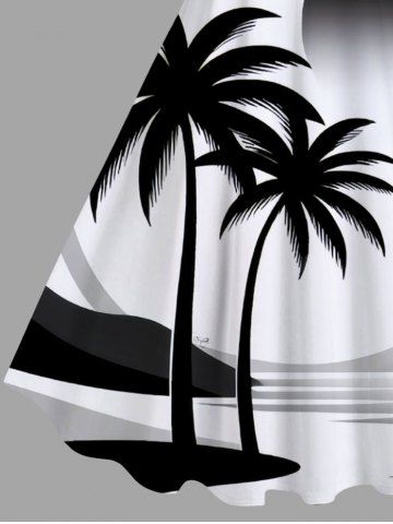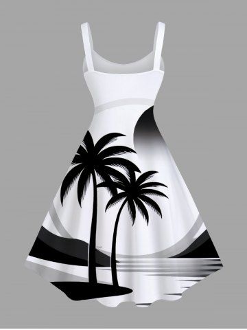 Plus Size Coconut Tree Sea Sun Print Hawaii A Line Tank Dress - White - 1x