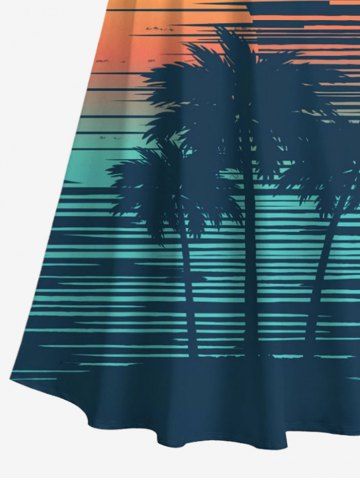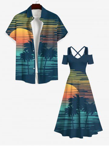 Graphic Dresses > Plus Size Coconut Tree Sea Sun Synthwave Print Cold Shoulder Crisscross Hawaii Maxi Dress