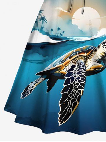 Graphic Dresses > Plus Size Coconut Tree Sea Turtle Sun Cloud Ombre Sky Print Hawaii Sea Creatures Lace Up A Line Tank Dress