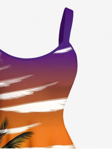 Plus Size Coconut Tree Sea Wave Sunset Ombre Sky Print Hawaii A Line Tank Dress - Orange - Xs