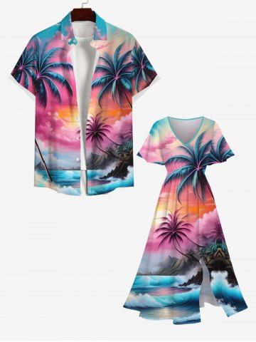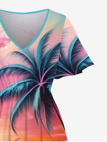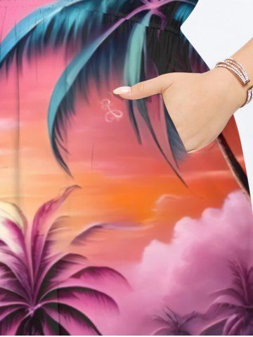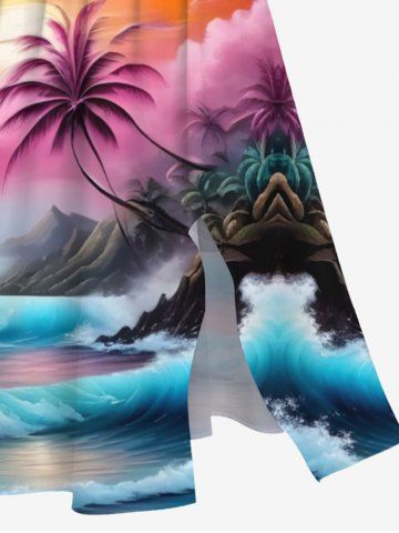 Plus Size Coconut Tree Sea Waves Colorful Cloud Ombre Print Split Hawaii Midi Dress - Multi-a - L