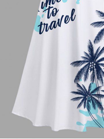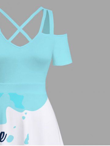 Plus Size Coconut Tree Sea Waves Letters Print Cold Shoulder Crisscross Hawaii Maxi Dress - Light Blue - 1x
