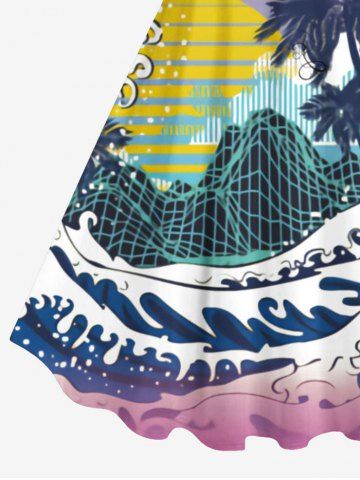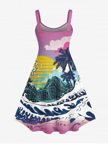 Plus Size Coconut Tree Sea Waves Moon Mountain Cloud Striped Print Hawaii Ombre A Line Tank Dress - Multi-a - L