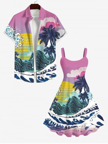 Graphic Dresses > Plus Size Coconut Tree Sea Waves Moon Mountain Cloud Striped Print Hawaii Ombre A Line Tank Dress