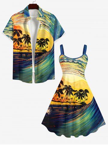 Graphic Dresses > Plus Size Coconut Tree Sea Waves Oil Painting Print Hawaii Tank Dress
