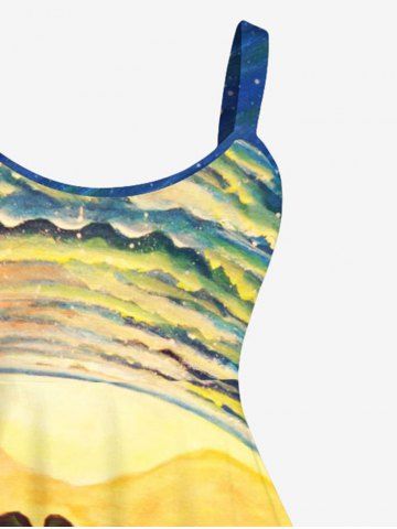 Plus Size Coconut Tree Sea Waves Oil Painting Print Hawaii Tank Dress - Multi-a - M