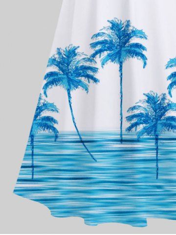 Plus Size Coconut Tree Sea Waves Print Cold Shoulder Crisscross Hawaii Maxi Dress - White - M