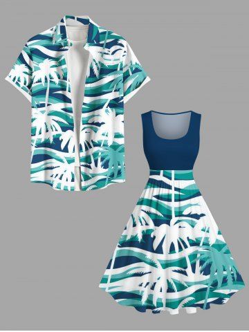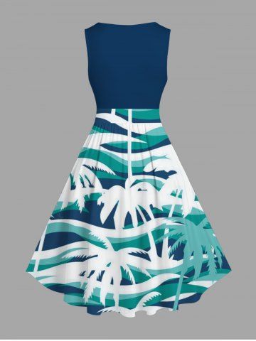 Graphic Dresses > Plus Size Coconut Tree Sea Waves Print Hawaii 1950s Vintage Dress