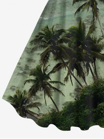 Plus Size Coconut Tree Sea Waves Print Hawaii A Line Tank Dress - Green - 6x
