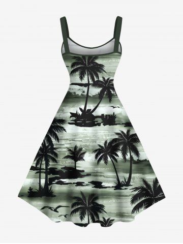 Plus Size Coconut Tree Sea Waves Print Hawaii Tank Dress - Green - 2x