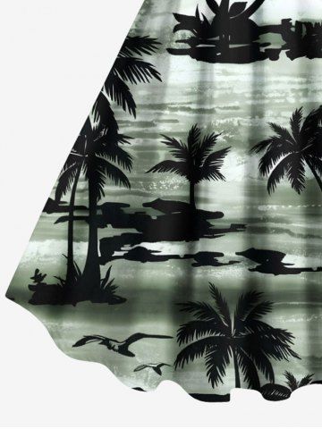 Plus Size Coconut Tree Sea Waves Print Hawaii Tank Dress - Green - 5x