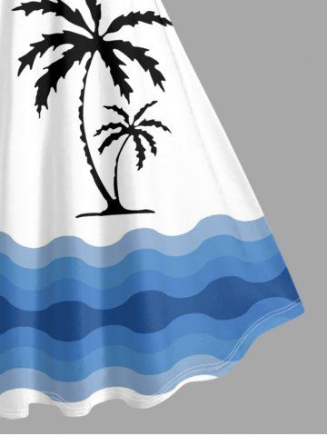 Graphic Dresses > Plus Size Coconut Tree Sea Waves Print Hawaii Tank Dress