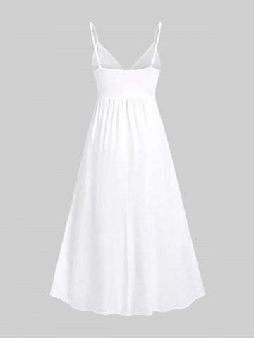 Plus Size Coconut Tree Sea Waves Print Surplice Hawaii Cami Dress - White - 5x