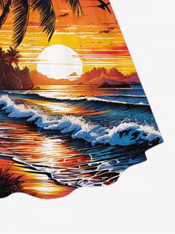 Graphic Dresses > Plus Size Coconut Tree Sea Waves Sun Print Cinched Hawaii Dress