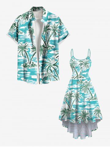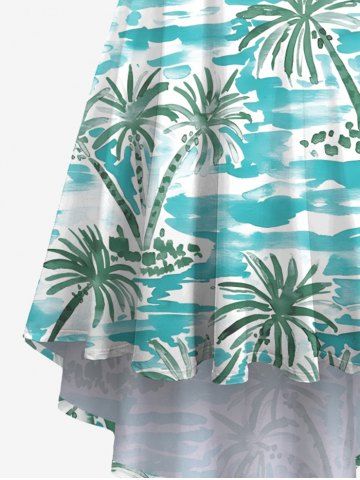 Plus Size Coconut Tree Sea Waves Watercolor Print High Low Hawaii Cami Dress - Light Green - 6x
