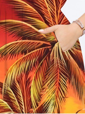Plus Size Coconut Tree Seascape Boat Bird Cloud Ombre Sky Print Split Hawaii Midi Dress - Orange - L