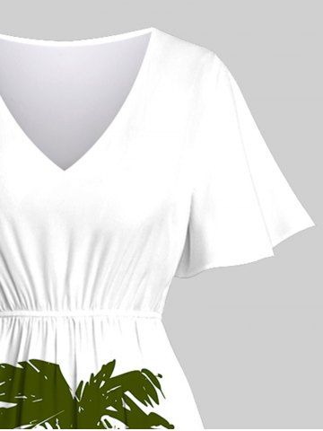 Plus Size Coconut Tree Seascape Cloud Mountain Print Split Hawaii Midi Dress - White - 6x