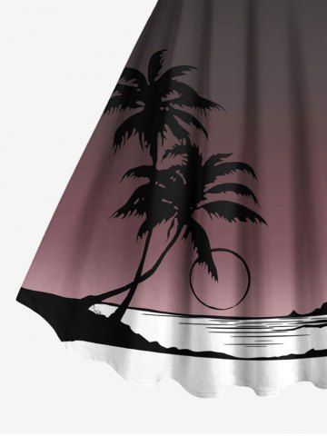 Plus Size Coconut Tree Seascape Ombre Print Hawaii Tank Dress - Black - Xxs