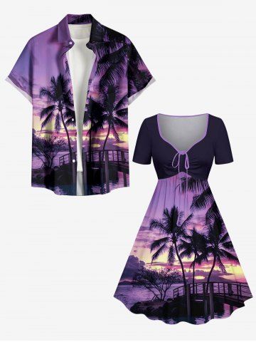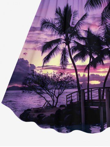 Plus Size Coconut Tree Seascape Ombre Sky Print Hawaii Cinched A Line Dress - Concord - Xs