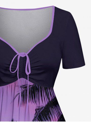Plus Size Coconut Tree Seascape Ombre Sky Print Hawaii Cinched A Line Dress - Concord - M
